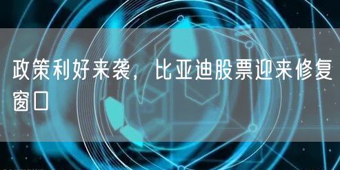 近期,随着政策的利好来袭,比亚迪股票迎来了难得的修复窗口。这一消息对于股市投资者来说,无疑是一个不容错过的投资机遇。