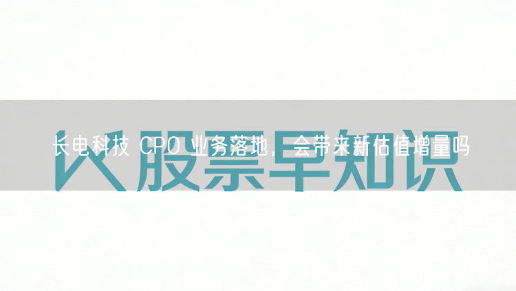 随着科技的飞速发展,长电科技紧跟时代步伐,不断在业务领域进行创新探索。近期,该公司宣布其CPO业务成功落地,这一举措引起了业界广泛关注。那么,长电科技CPO业务的落地,是否会为公司带来新的估值增量呢?本文将对此进行深入探讨。